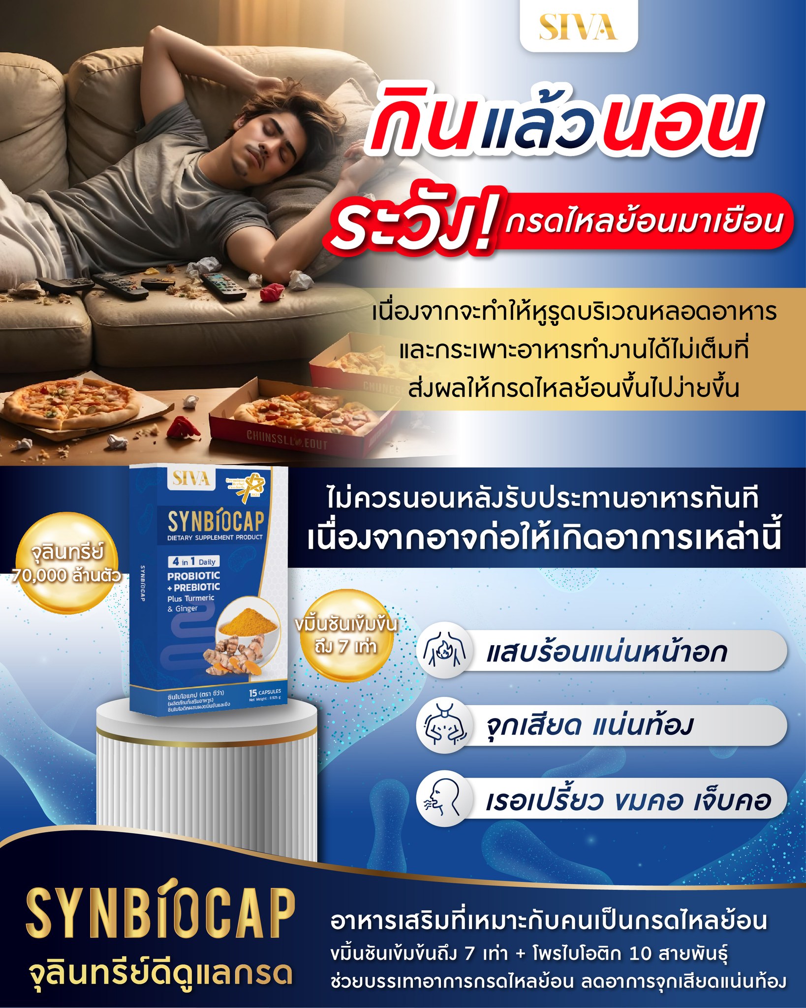 หรือเลือกทานอาหารเสริมอย่าง Synbiocap จุลินทรีย์ดีดูแลกรด ตัวช่วยที่เหมาะกับคนเป็นกรดไหลย้อน ช่วยลดอาการจุกเสียดแน่นท้อง