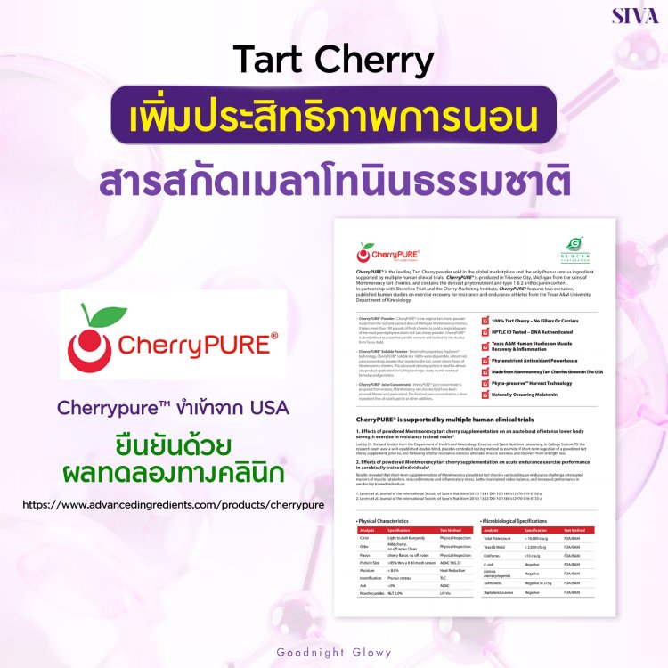 ผลิตภัณฑ์อาหารเสริม ทาร์ตเชอรี่ เมลาโทนินจากธรรมชาติ, แอล กลูต้ามีน, แอล ธีอะนิน. ช่วยในการนอนหลับและบำรุงผิวอย่างเป็นธรรมชาติ เหมาะสำหรับคนที่นอนหลับยาก